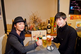 居酒屋らしい大ジョッキを片手に、二人のお酒にまつわるエピソードにはじまり、声優としての生きる道や、今後の抱負などの真面目なテーマまで、幅広く語り合われた。